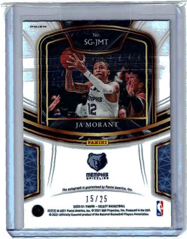2020-21 SELECT JA MORANT TIE DYE PRIZM SIGNATURE AUTO 15/25 MEMPHIS GRIZZ MVP
